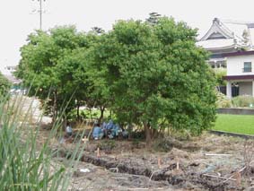 道路工事予定地そばの木陰で憩うゴボウ建設
