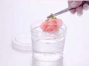 充分に花の色が抜けたらそっと取り出してください。 このとき花は硬くなっているので慎重に取り扱ってください。 |