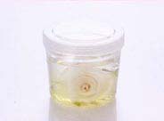 プリザ液Bを入れた容器に脱色した花を入れます。 |